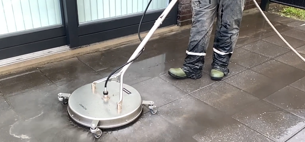 Fliserne renses skånsomt med professionelt udstyr. I særligt genstridige tilfælde anvender vi varmt vand op til 90 °C for effektivt at løsne alger og flisepest.